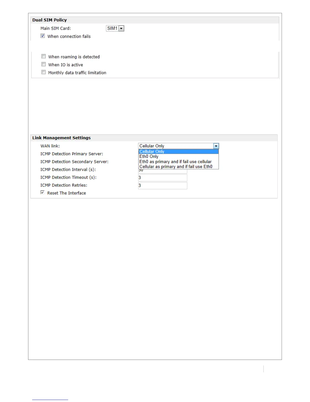 Note: This section will be hidden if user selects “Cellular as primary and if fail use Eth0” in