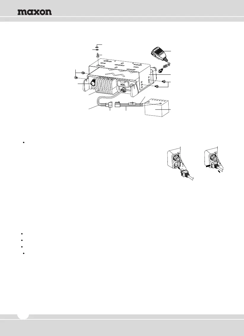 1. Insert the microphone plug into jack on the front panel of the transceiver.