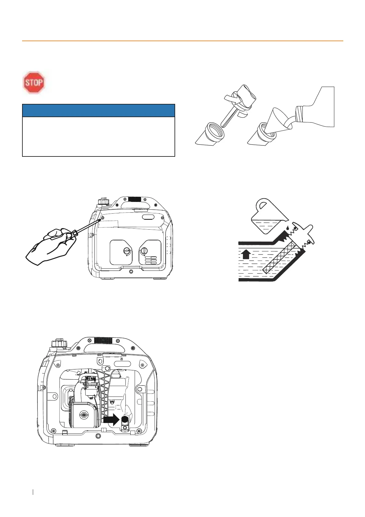 4. Do not overfill, if oil level is too high, oil will drain