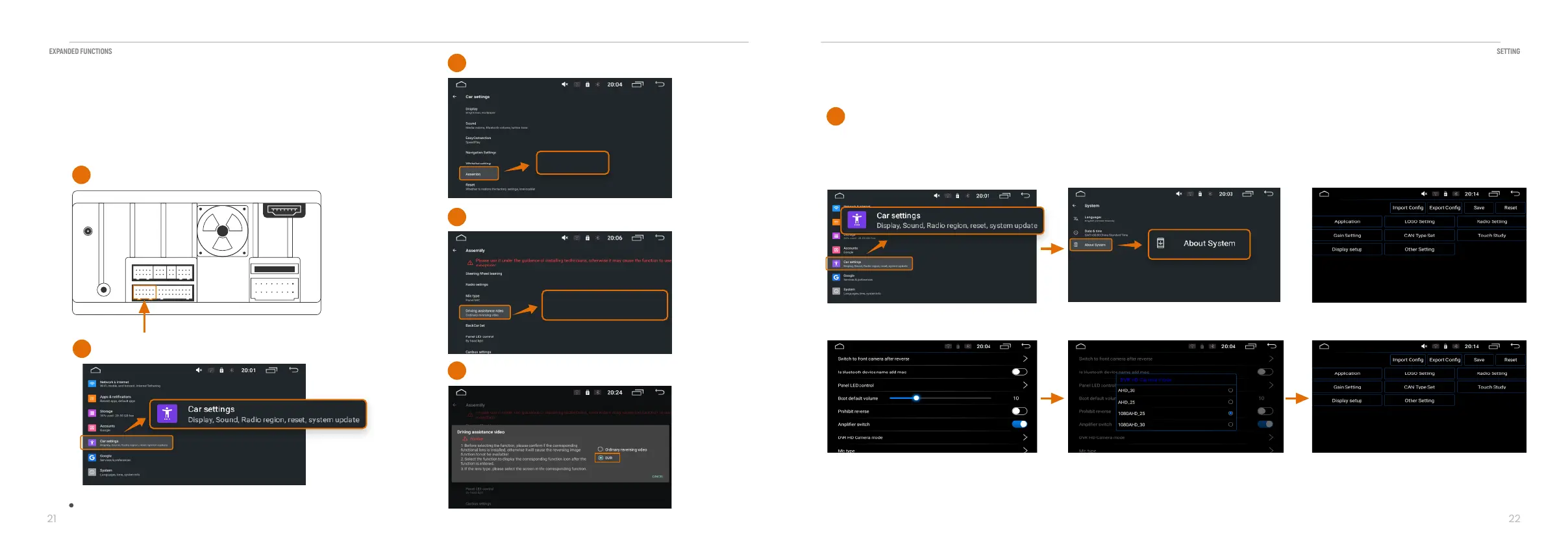 1Setting --- System --- about system --- factory setting --- Code 3368 --- other setting --- DVR HD camera mode