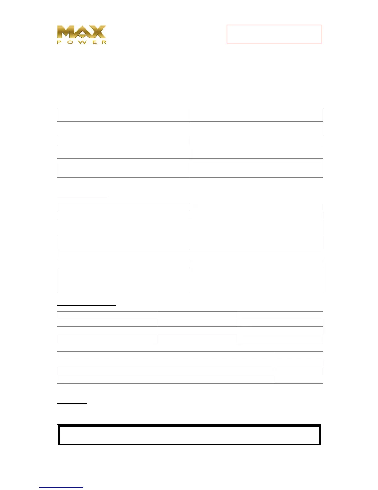 VERY IMPORTANT: Please complete this form and fax a COPY to Max Power with a