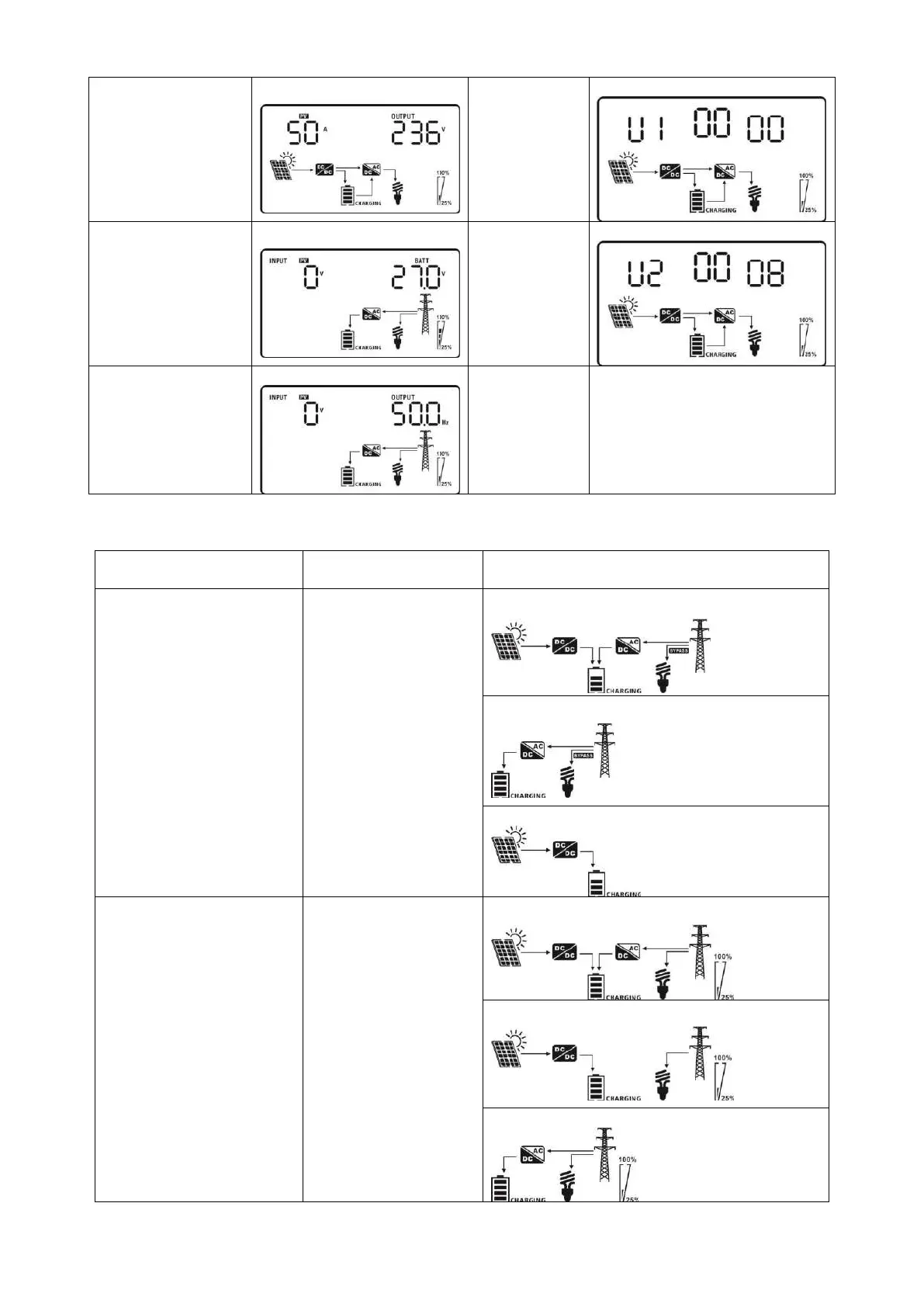 MaxPower Sunbridge 1000 - Detailed Operating Modes and Faults; Charging and Output Information Display; Operating Mode Descriptions