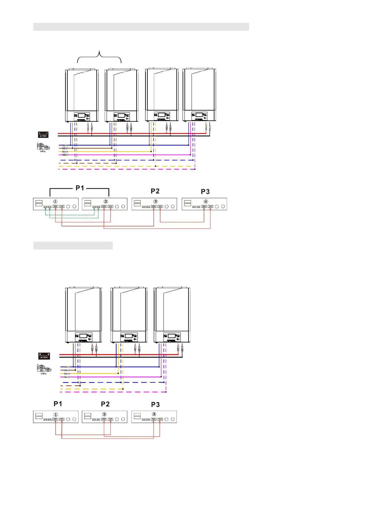 WARNING: Do not connect the current sharing cable between the inverters which are in different phases.