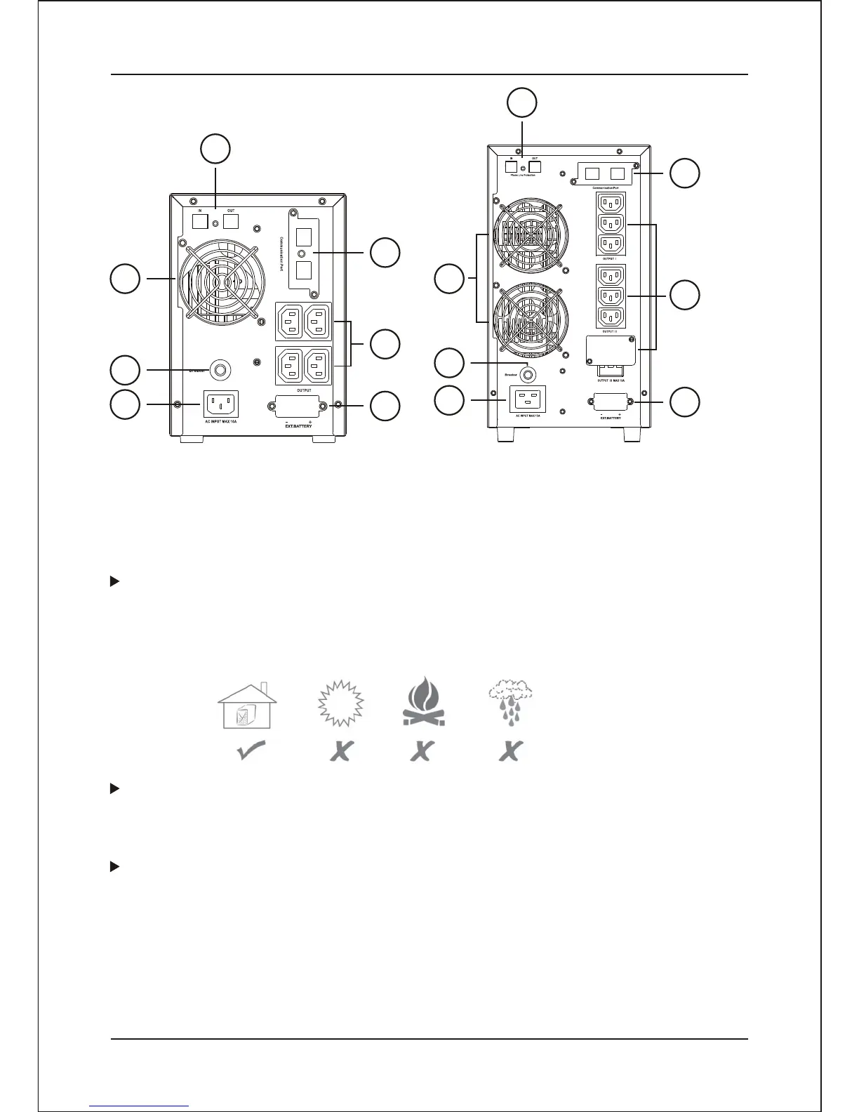 The UPS must be installed in a protected environment away from heat-emitting
