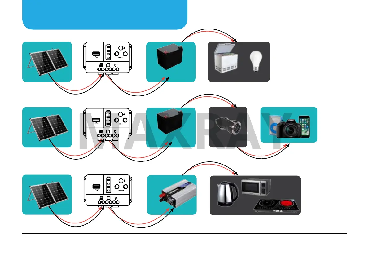 Maxray Folding Solar Panel - Typical Applications; Powering DC Appliances and Electronics