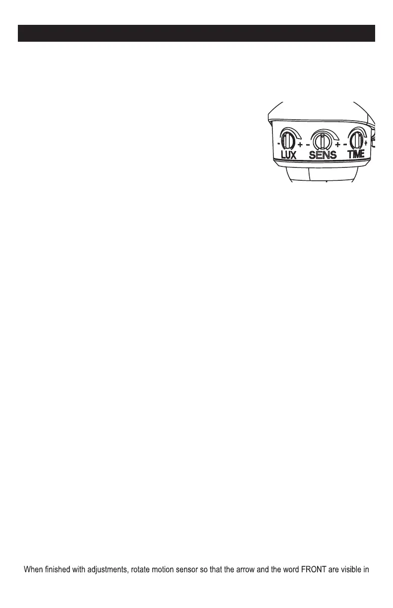 o test the motion sensitivity, aim the sensor head toward the desired area. Set the TIME dial to minimum