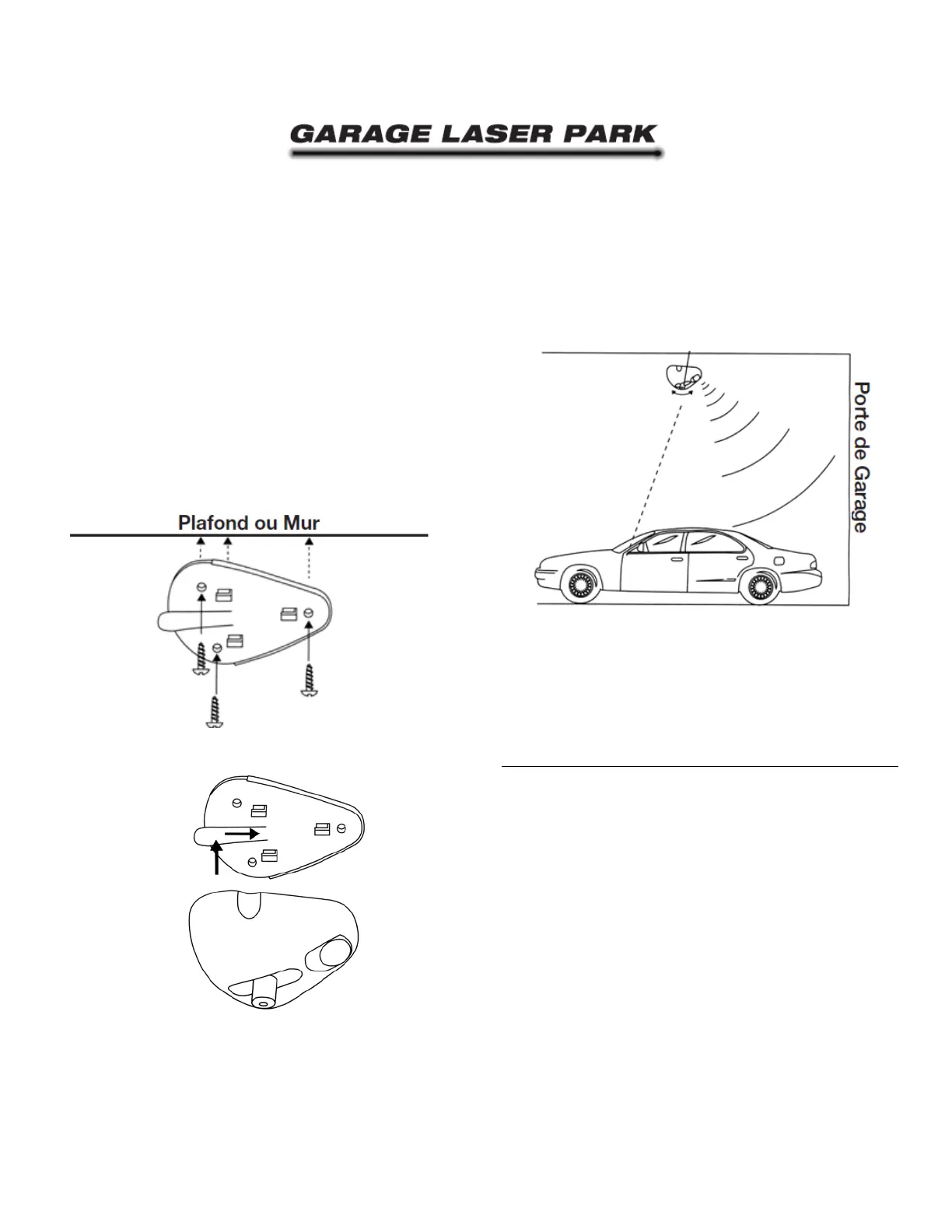 plafond ou au mur (voir ci-dessous) avec les 3 vis ou le collant