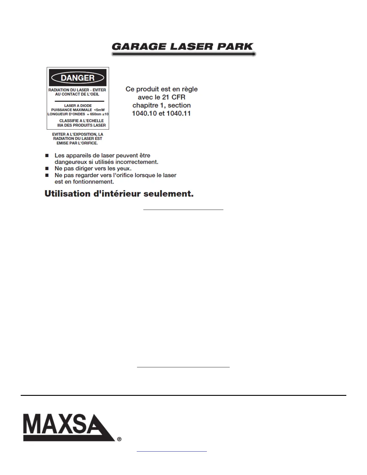 personne, enterprise ou société n’est autorisée à endosser pour MAXSA Innovations, LLC tout autre responsabilité en rapport avec