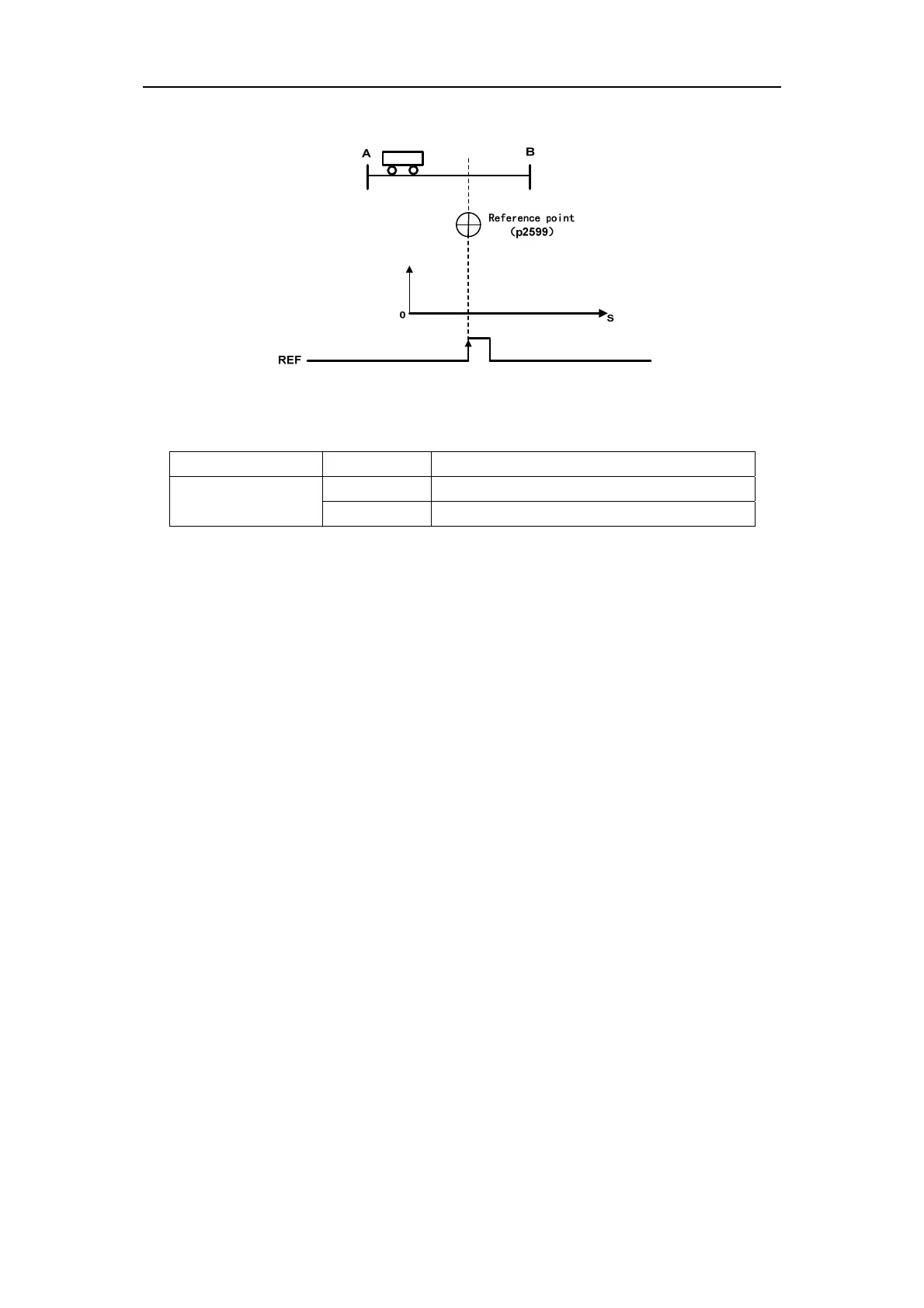At the rising edge of signal REF, the current position is set to 0, and the servo drives back to