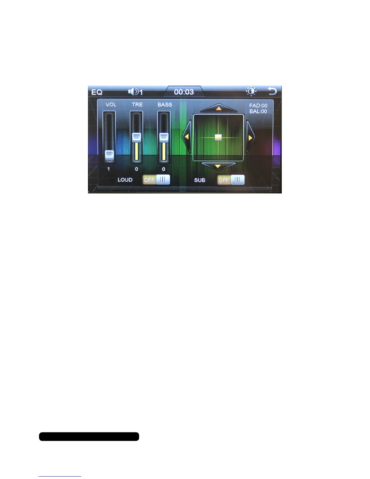 On this screen you can activate the Sub and Loudness option as well as control