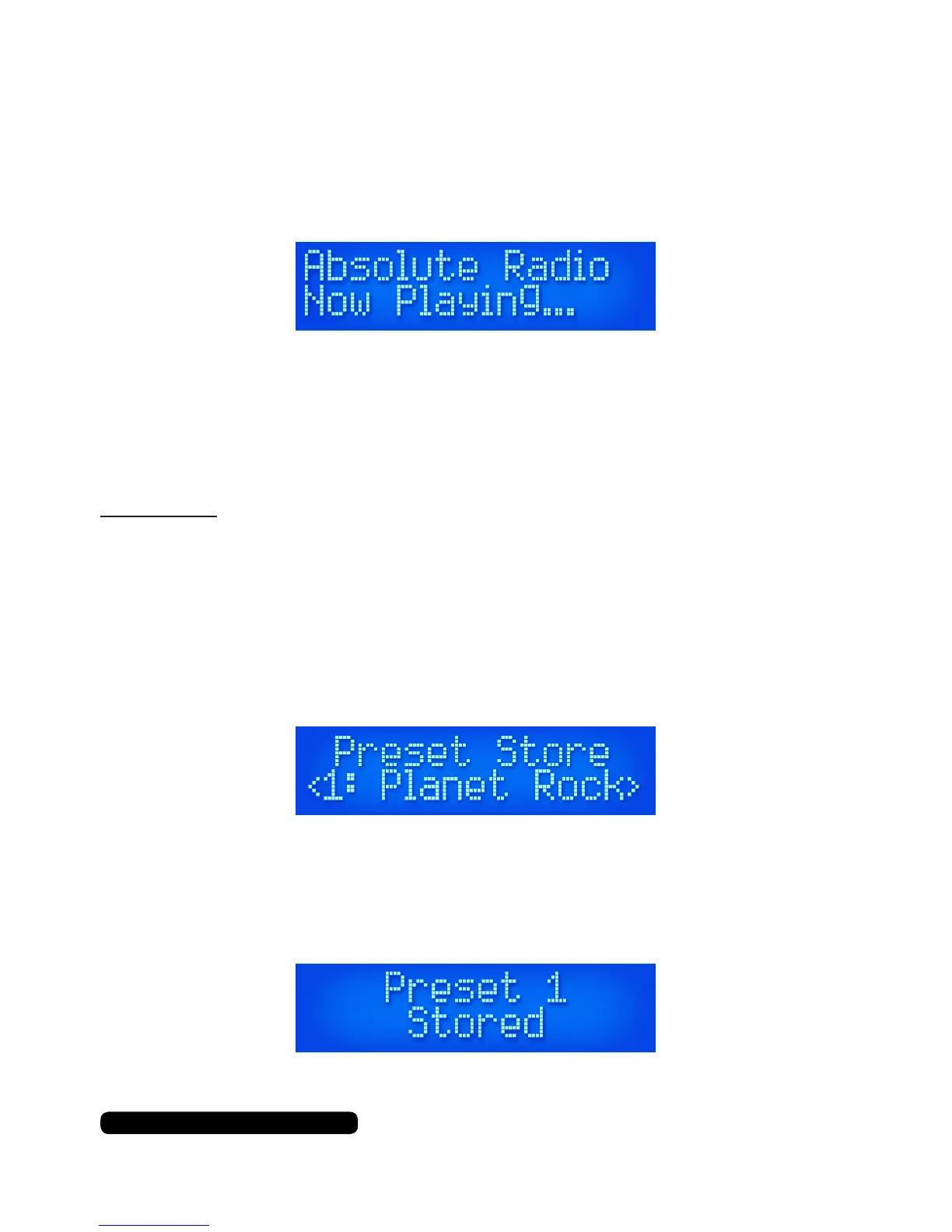 saved message on the screen conrming the preset has been stored.