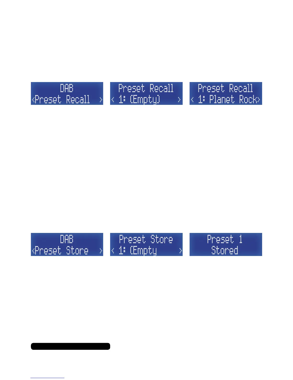 The rst option will be ‘Preset Recall’, press the ‘Select/Snooze’