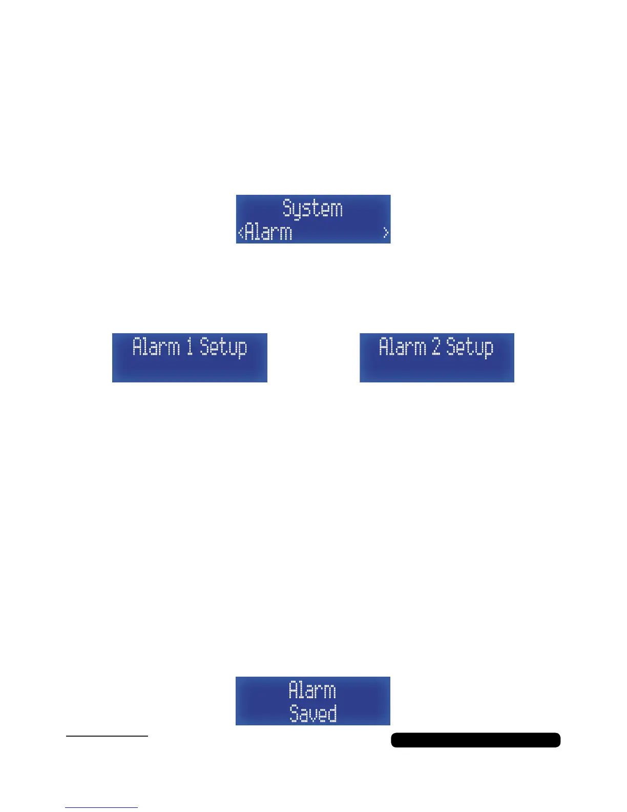 The ‘alarm saved’ screen will show to conrm the alarm details