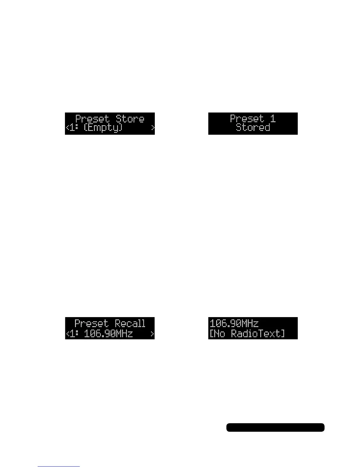 see ‘Preset Store’, press the tune +/- to cycle through the available