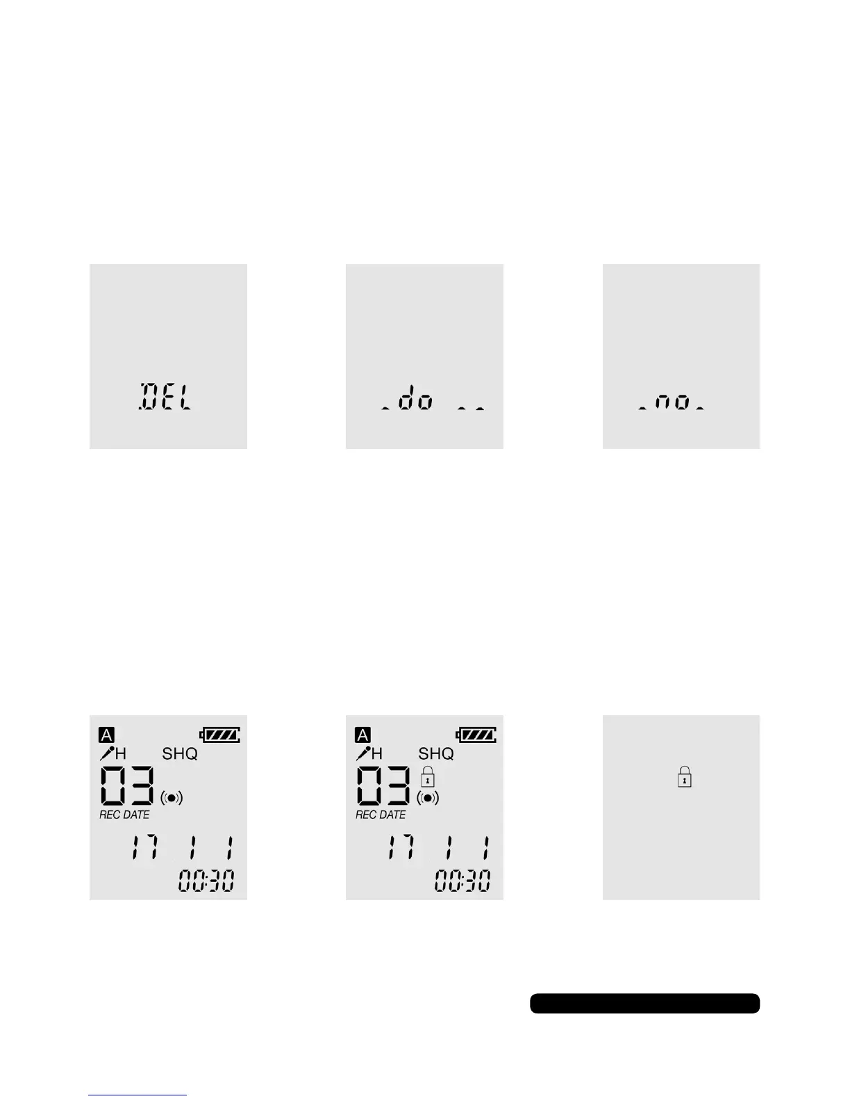 recorded les. Press and hold the ‘ERASE’ until ‘DEL’ shows on the