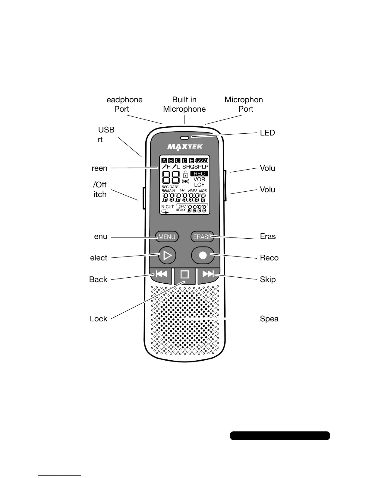 MAXTEK 79007 - Layout; Dictaphone Controls and Ports