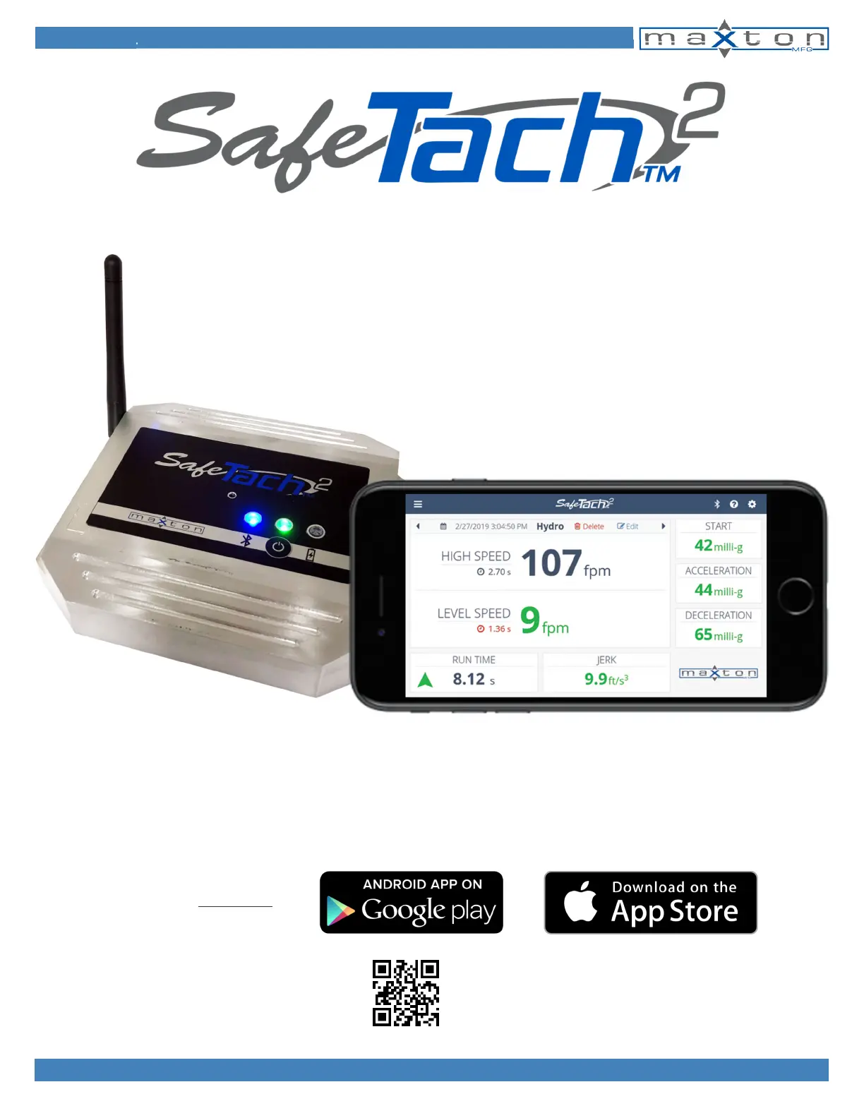 The next generation SafeTach2 Elevator Performance Meter (APP/Node combo) from Maxton is the