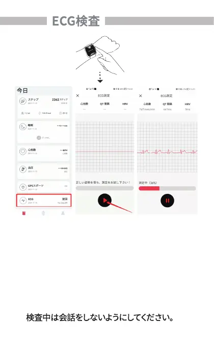 3.ECG機能を開いECG測定開始