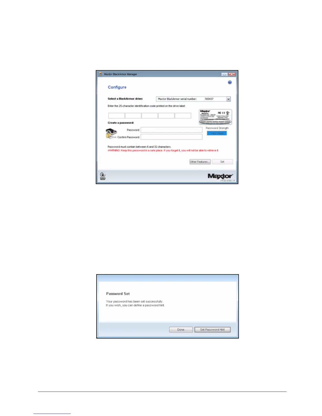 Step 6: Click Done to close the Password Set window or Set Password Hint to create a