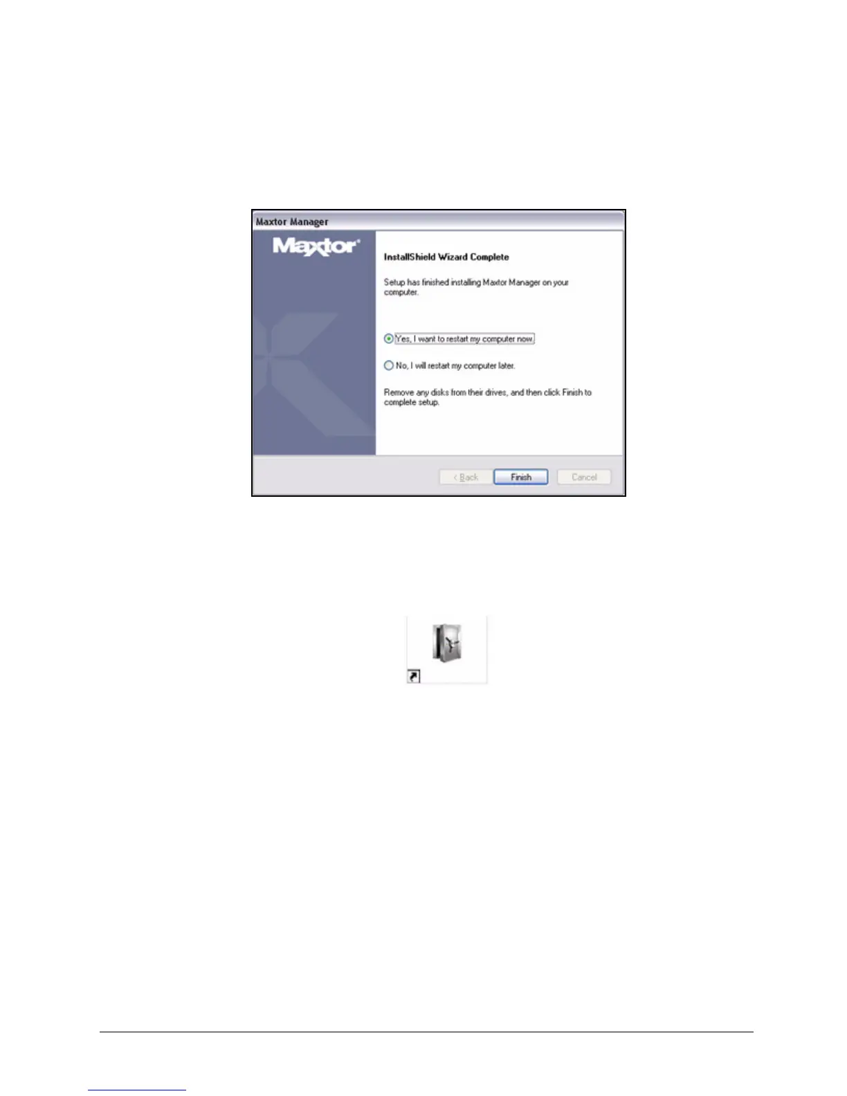 When your computer has restarted, a Maxtor Manager icon appears on your