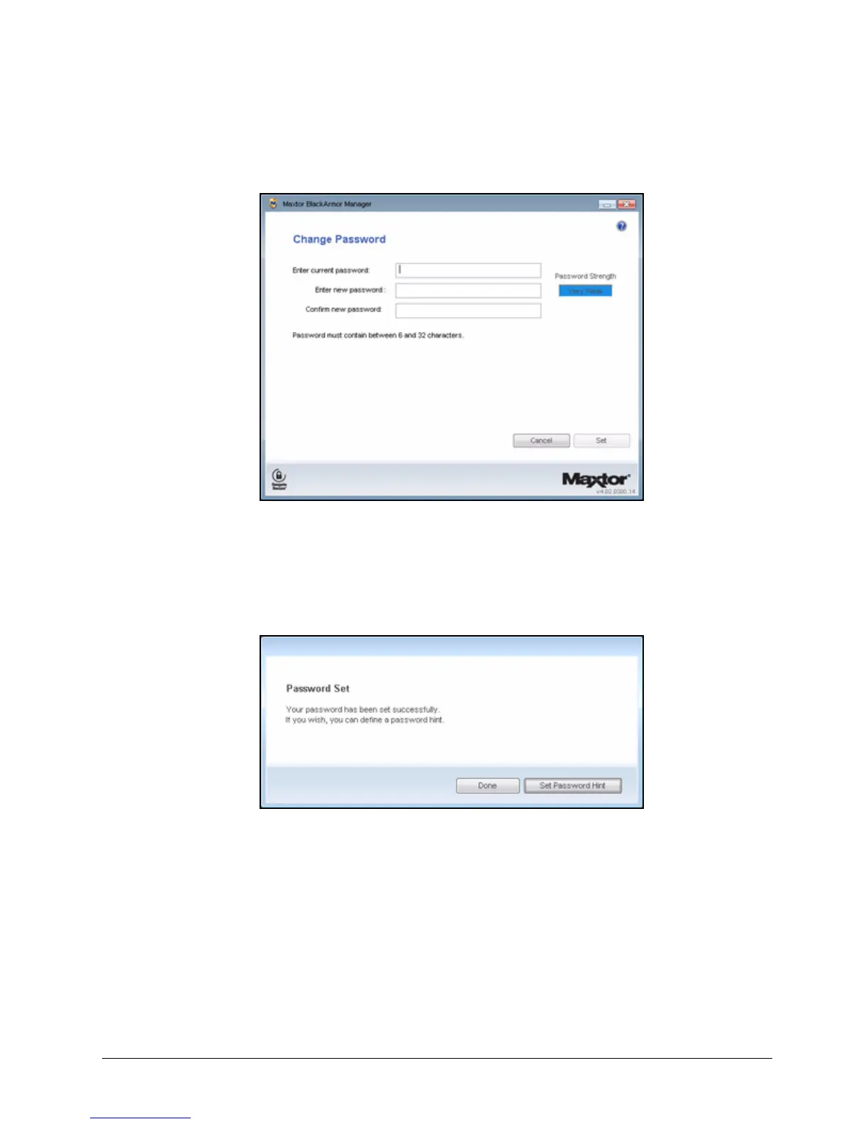 The Change Password window opens: