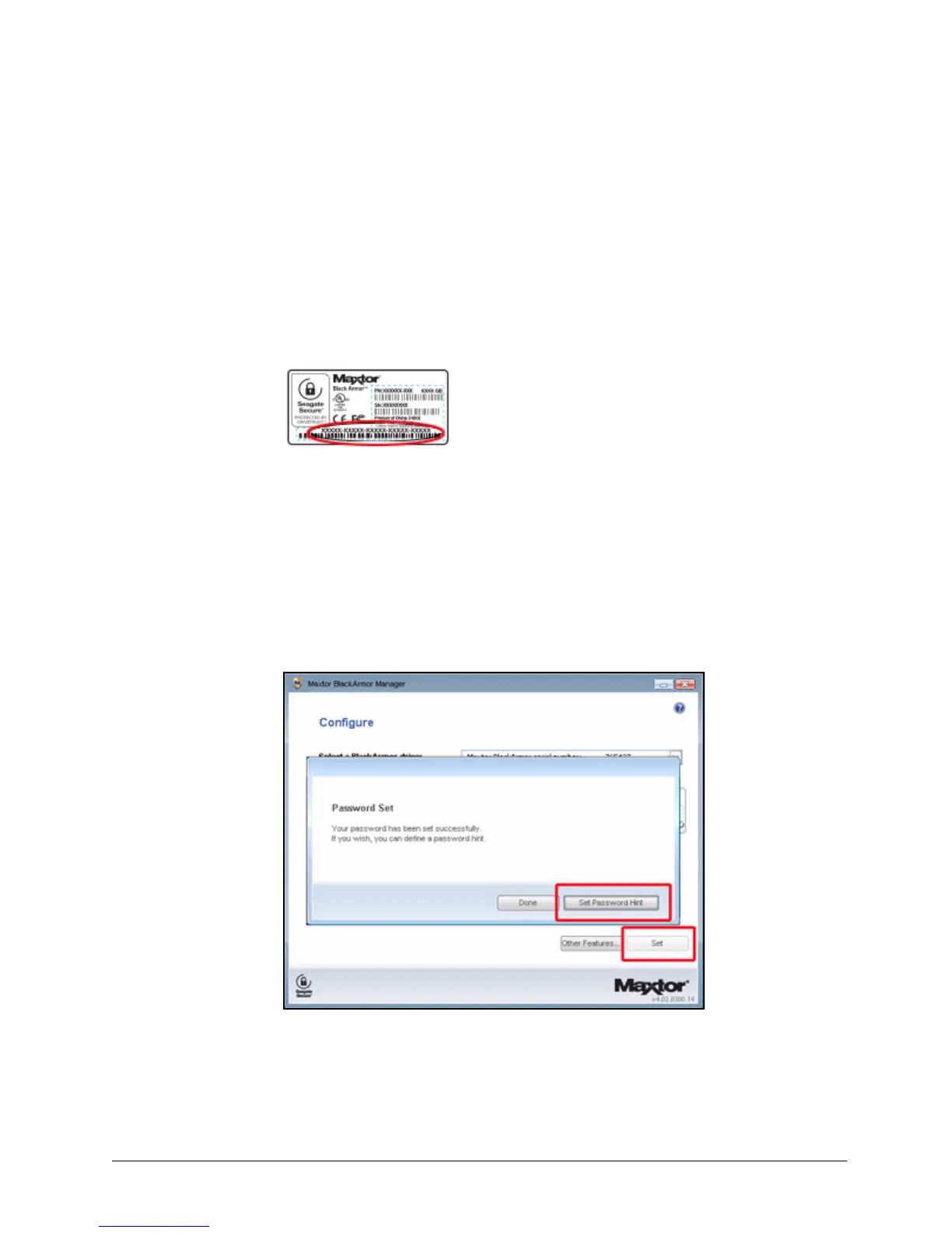 (b) Click Set Password Hint in the Password Set window.