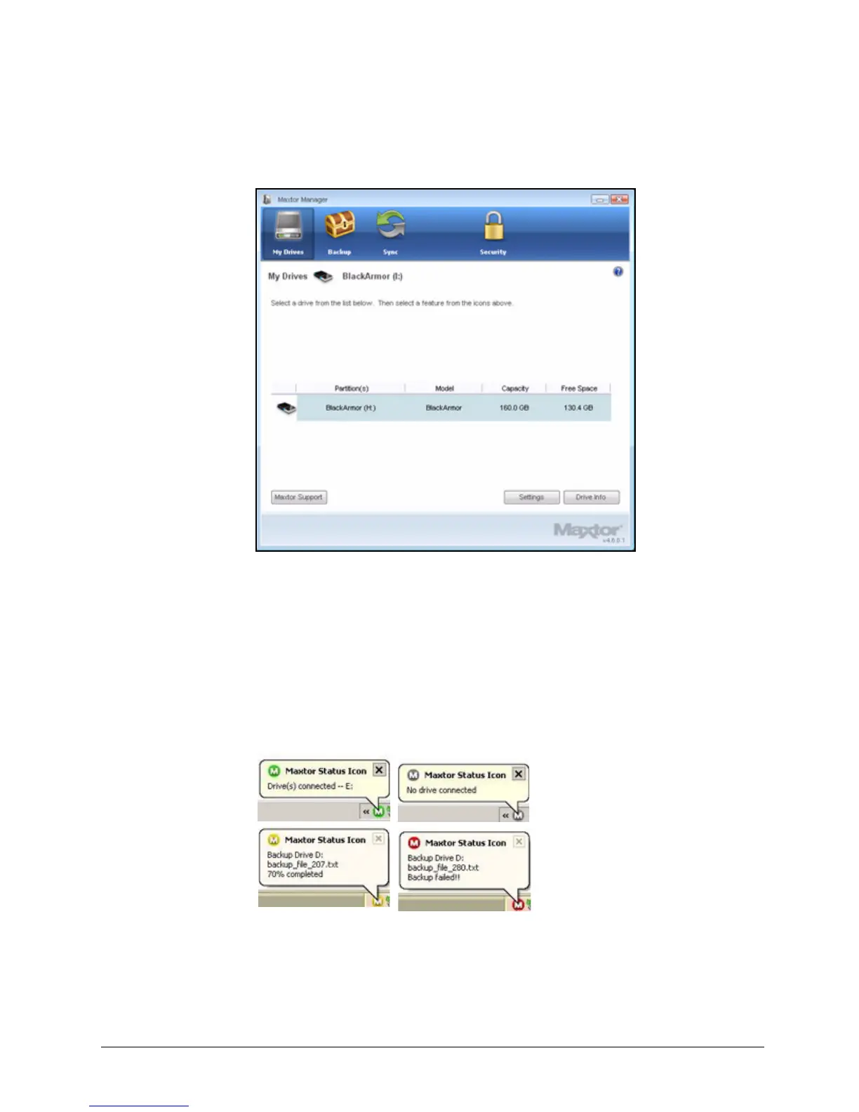 You can use the Maxtor Manager system tray icon to check the status of your BlackArmor drive