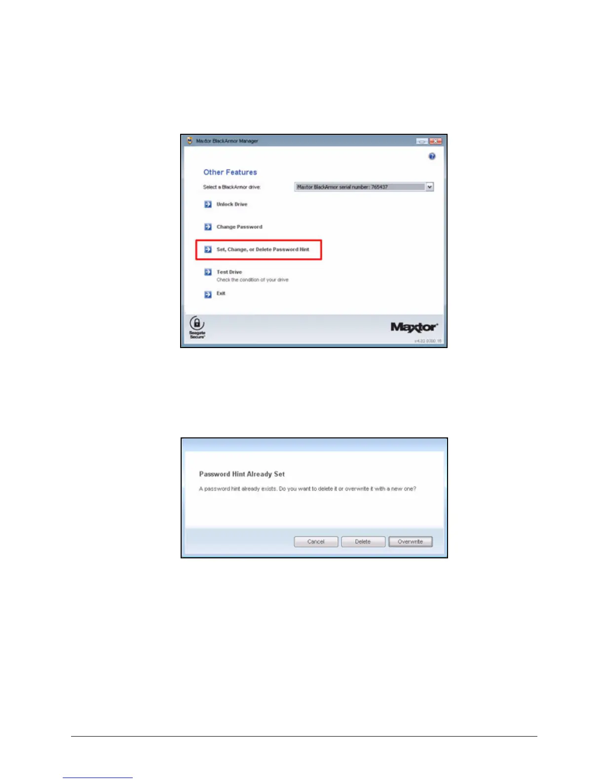Step 3: Click Set, Change, or Delete Password Hint.