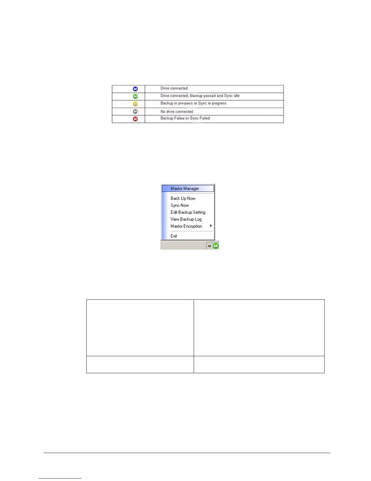 Step 2: To display the Maxtor Manager menu, click the system tray icon: