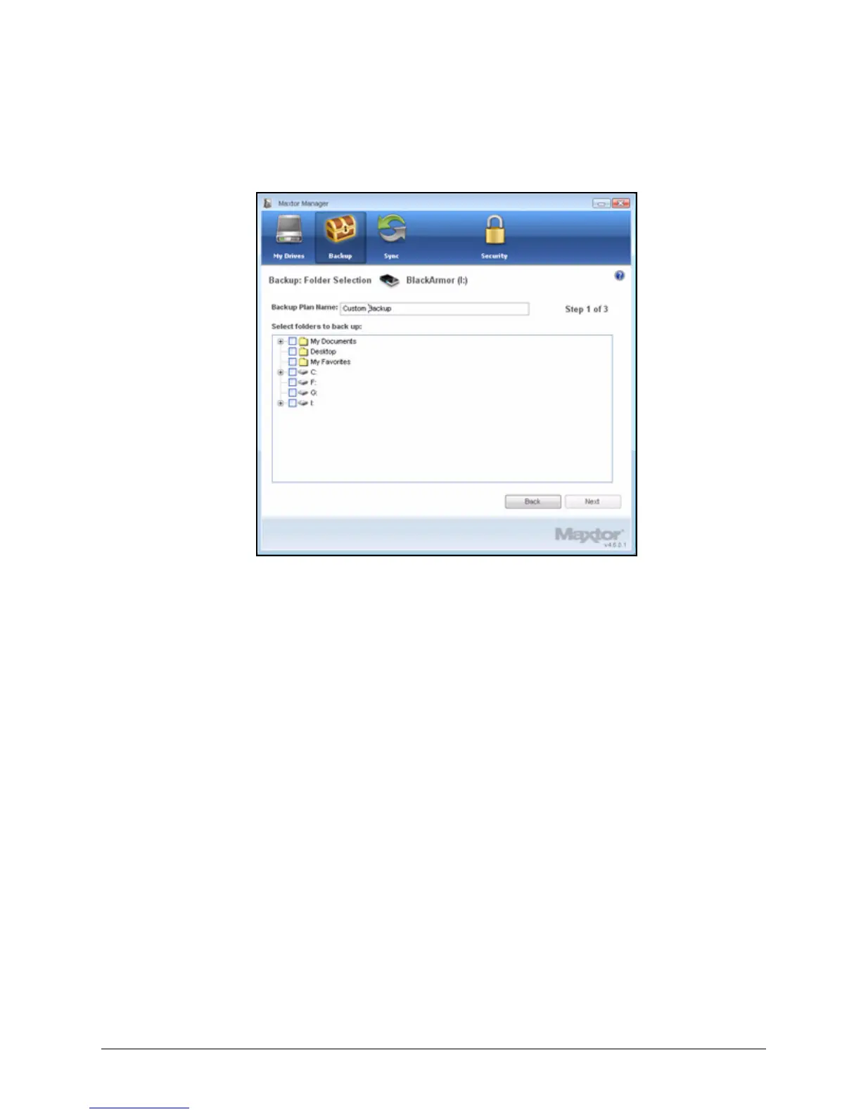 Step 3: Name your Backup Plan, select the folders to be backed up, and click Next.