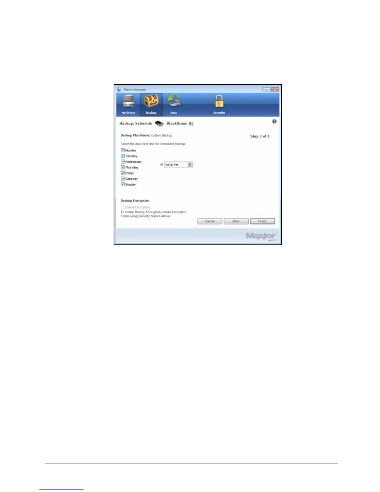 Step 6: Select the days and time you want to back up your folders and click Finish.
