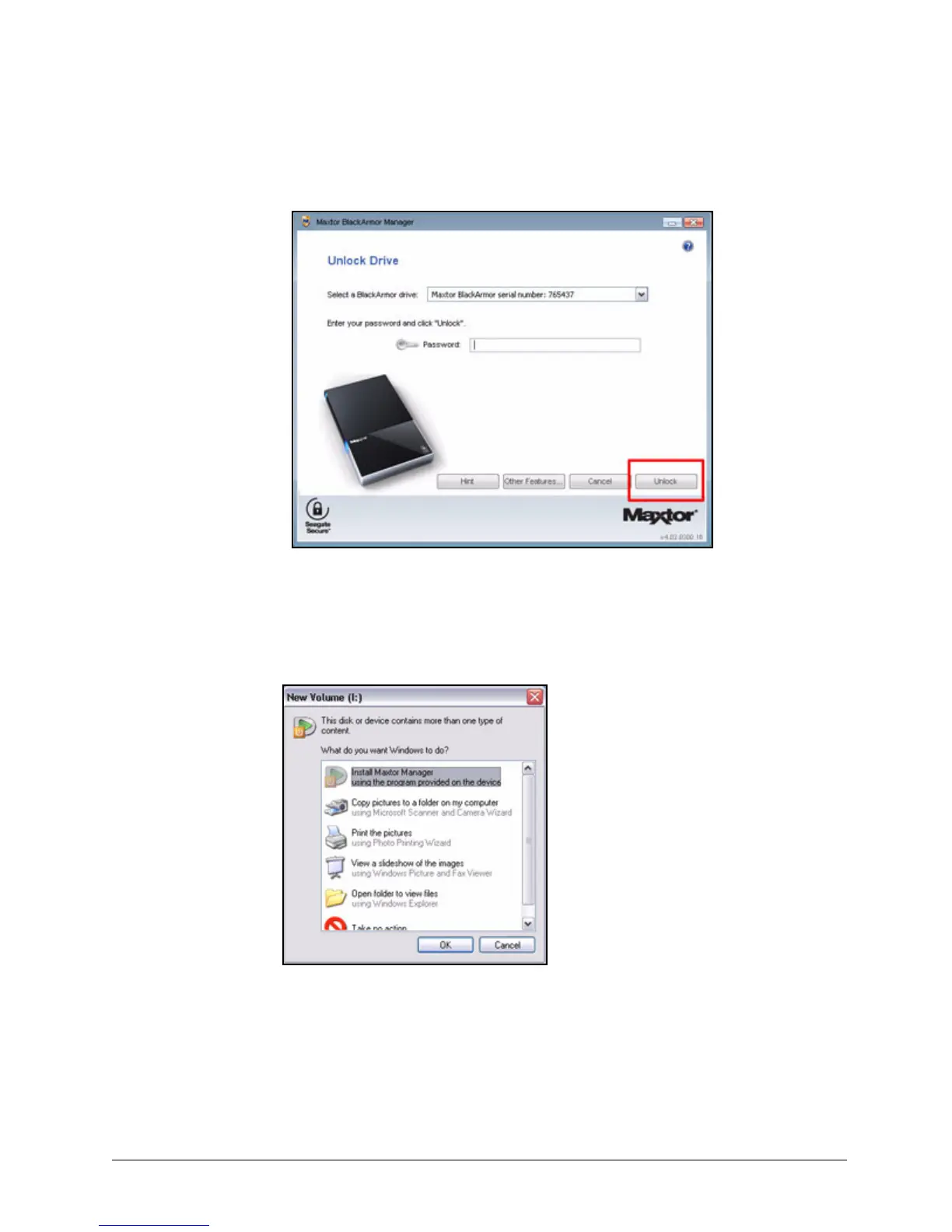 Step 8: Select Install Maxtor Manager using the program provided on the device and