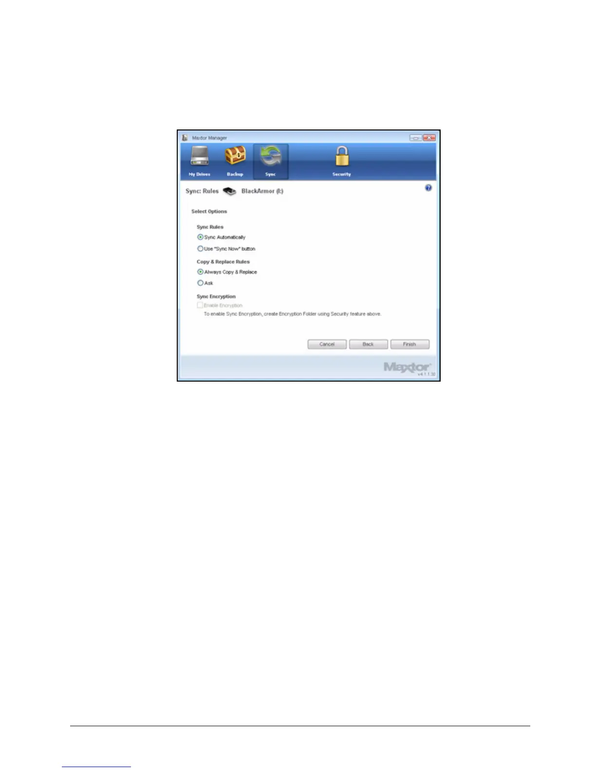Step 1: Click the Sync icon in the Maxtor Manager window.