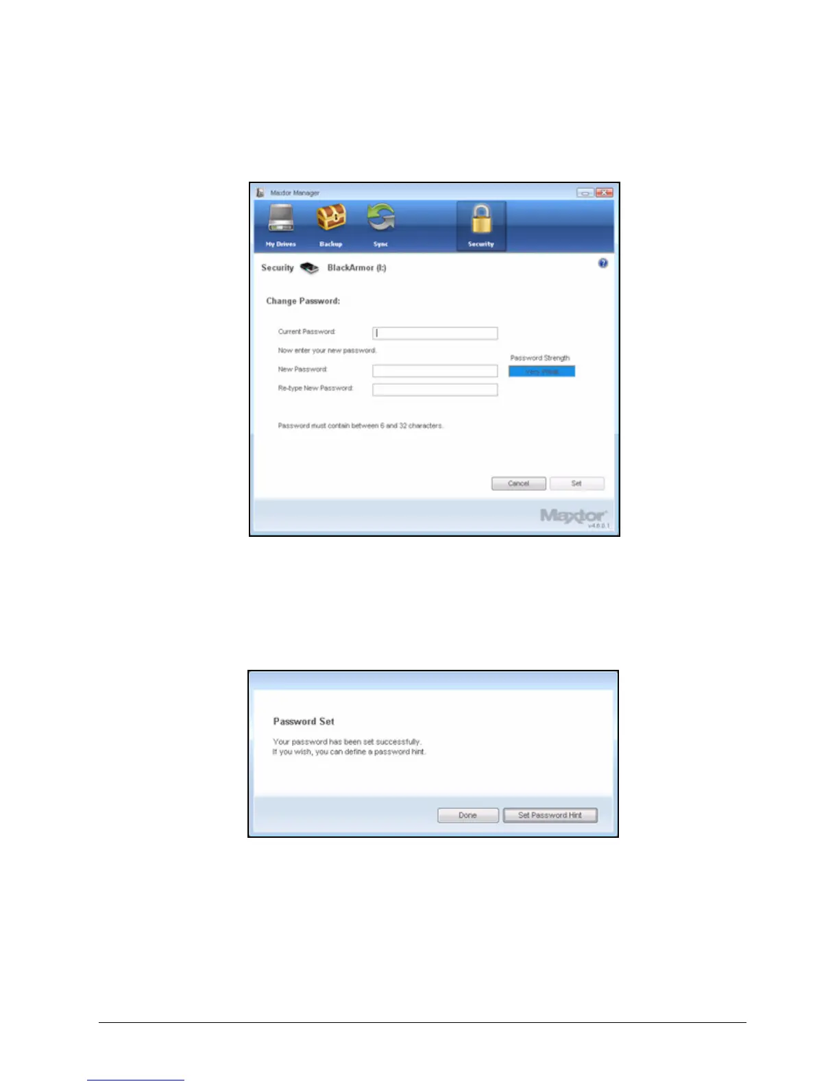 Step 5: Click Done to return to the Security window or click Set Password Hint to set a