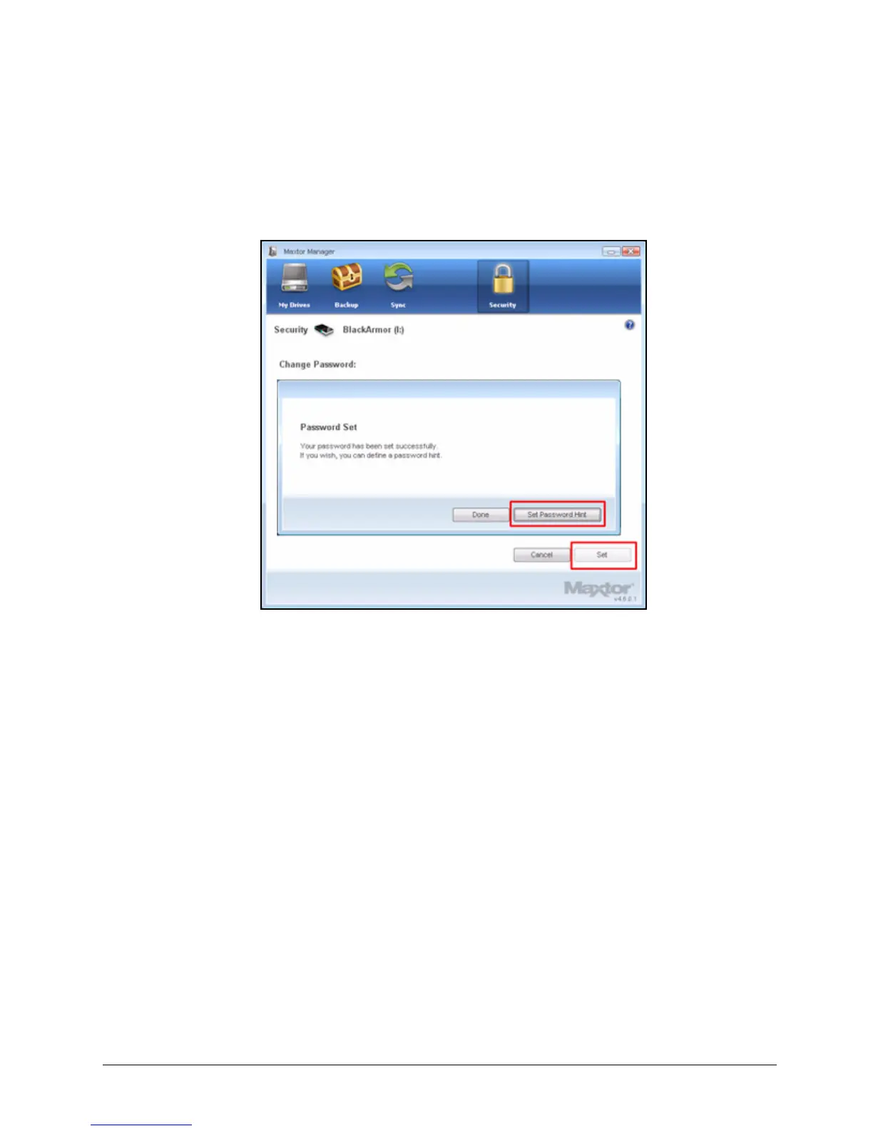 (b) Click Set Password Hint in the Password Set window.
