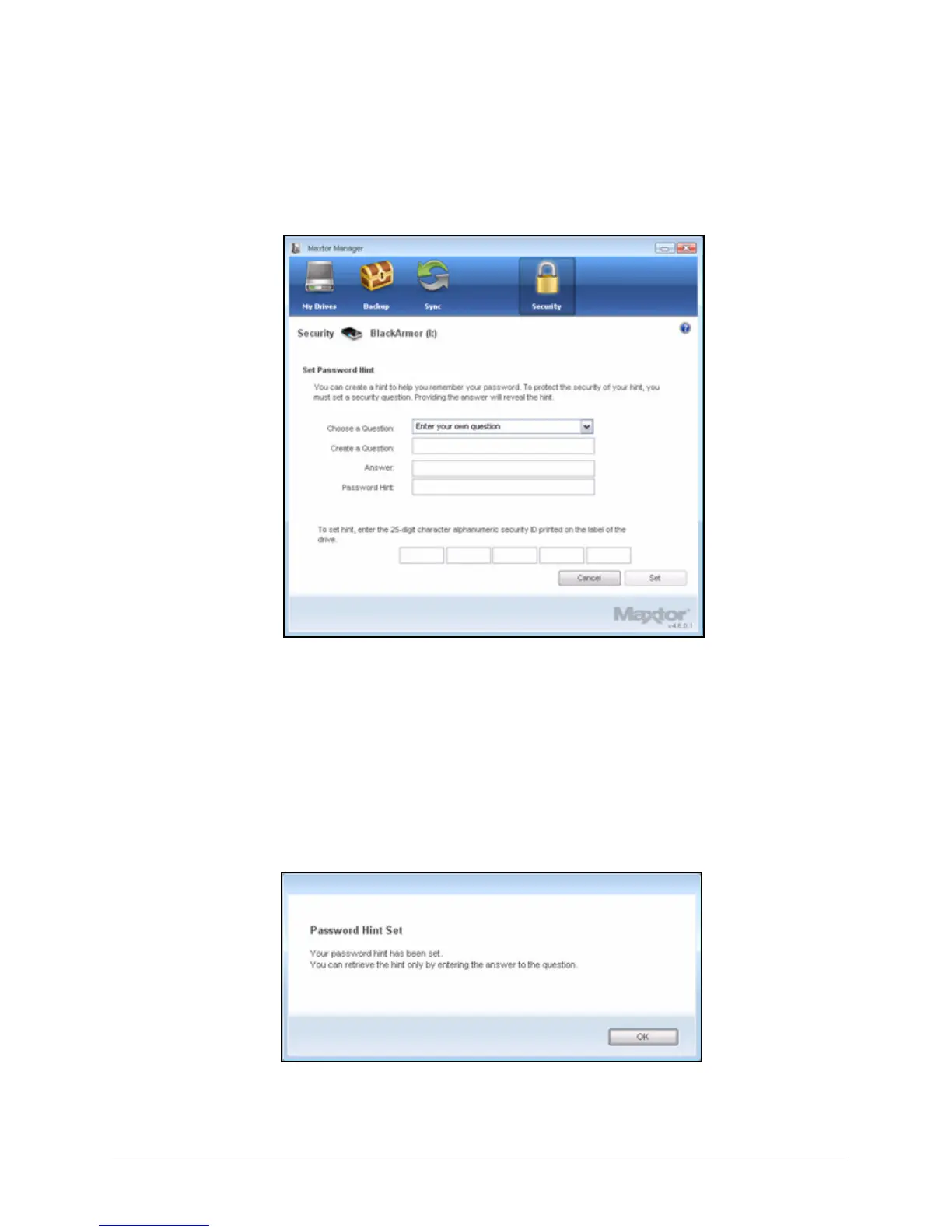 Figure 92: Set Password Hint