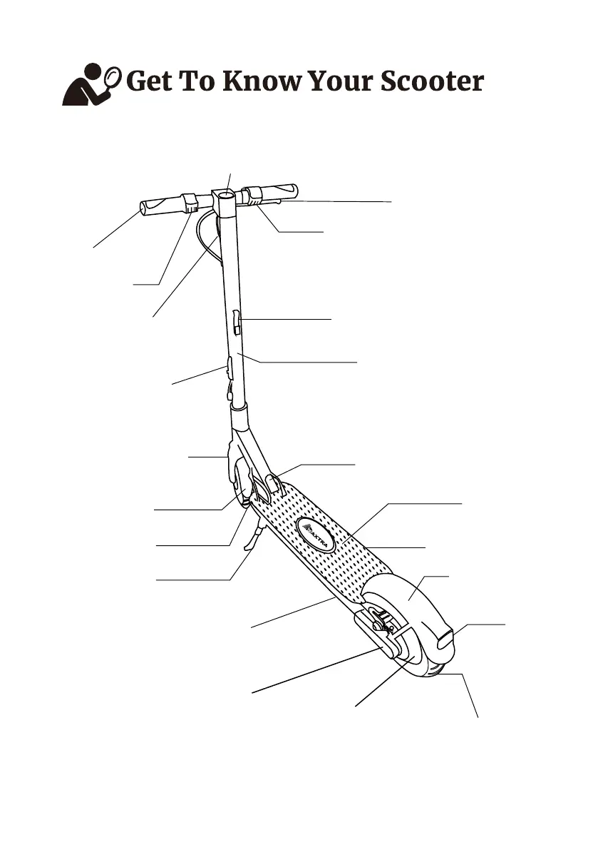 MAXTRA MAX - Scooter Component Identification; Handlebar and Control Features; Frame and Deck Components; Wheels, Lights, and Reflectors