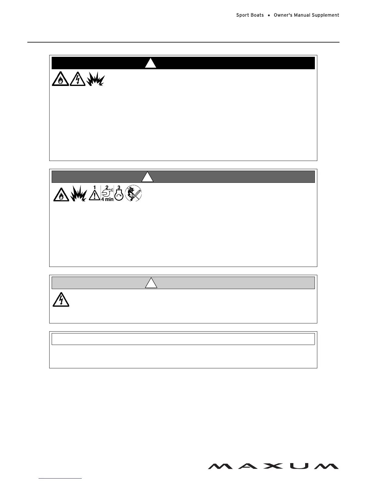 • Fuel fumes are heavier than air and will collect in the bilge areas where they can be