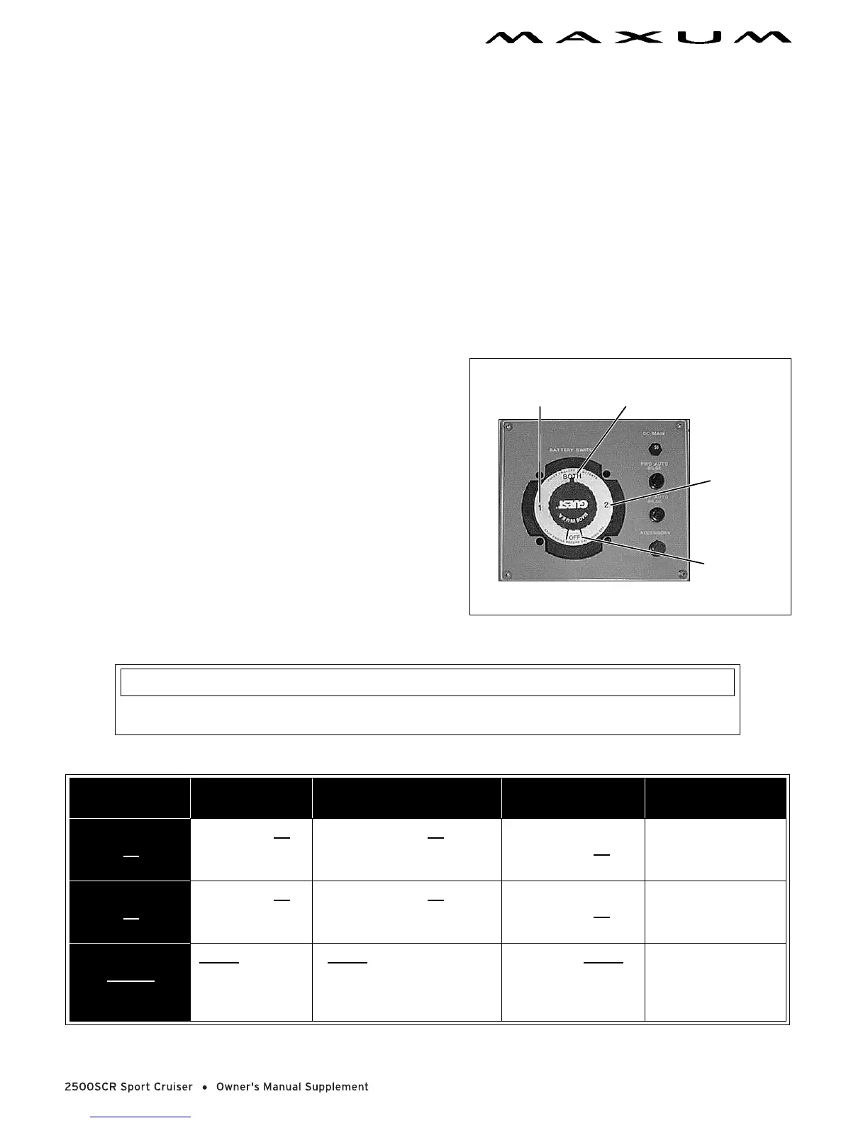 • The battery switch has four (4) positions.