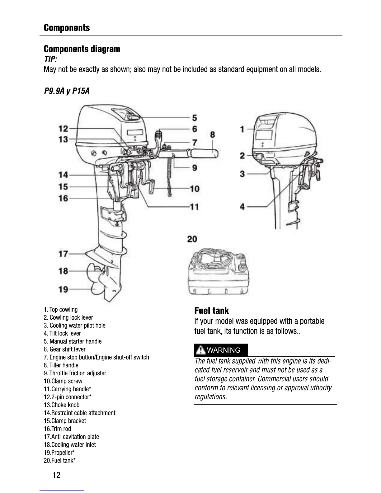 Maxus T15M - Outboard Motor Components; Component Identification Diagram; Fuel and Control System Parts
