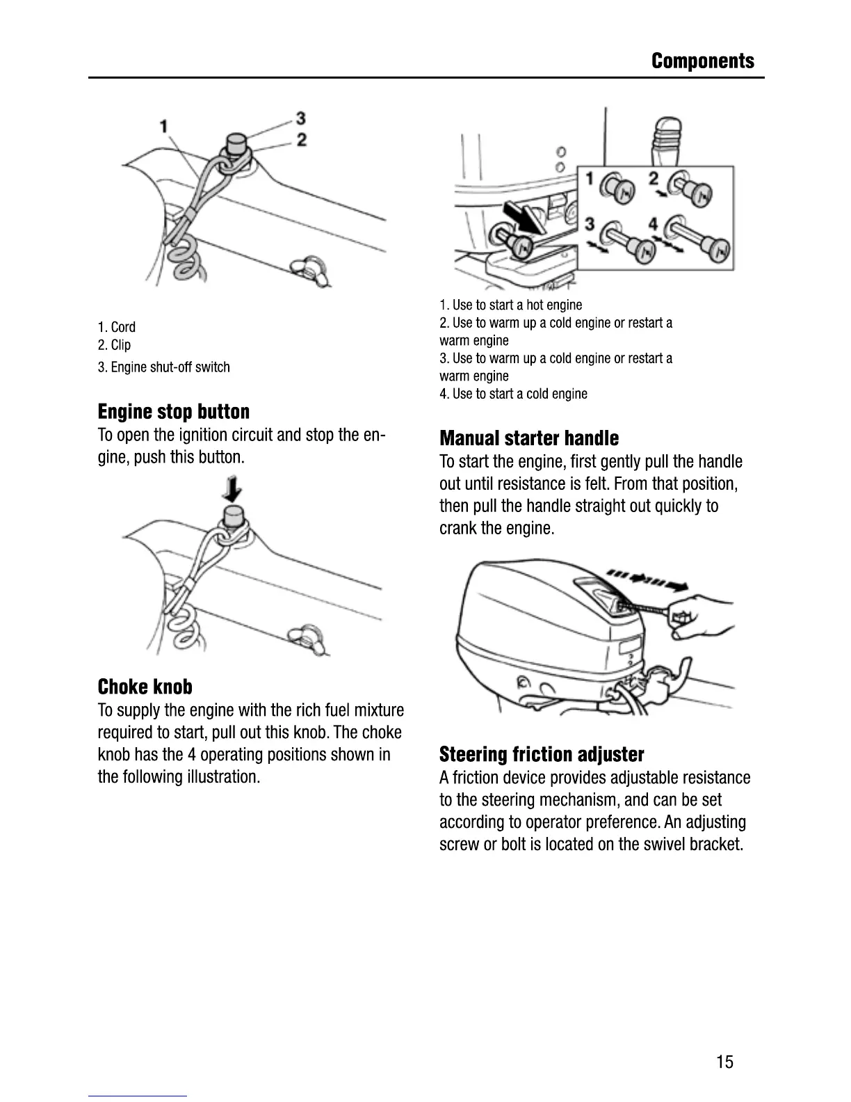 Maxus T15M - Engine Stop Button; Choke Knob; Manual Starter Handle; Steering Friction Adjuster