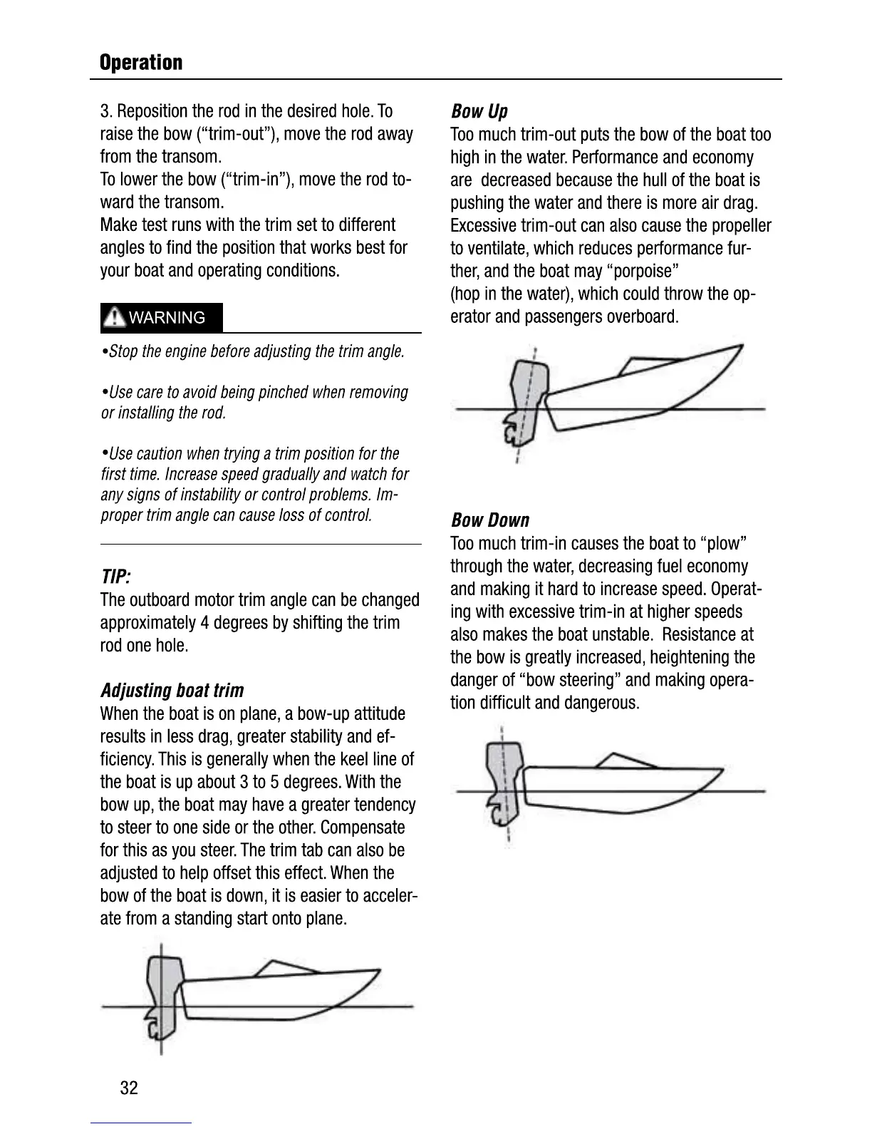 Maxus T15M - Adjusting Boat Trim; Bow up; Bow down