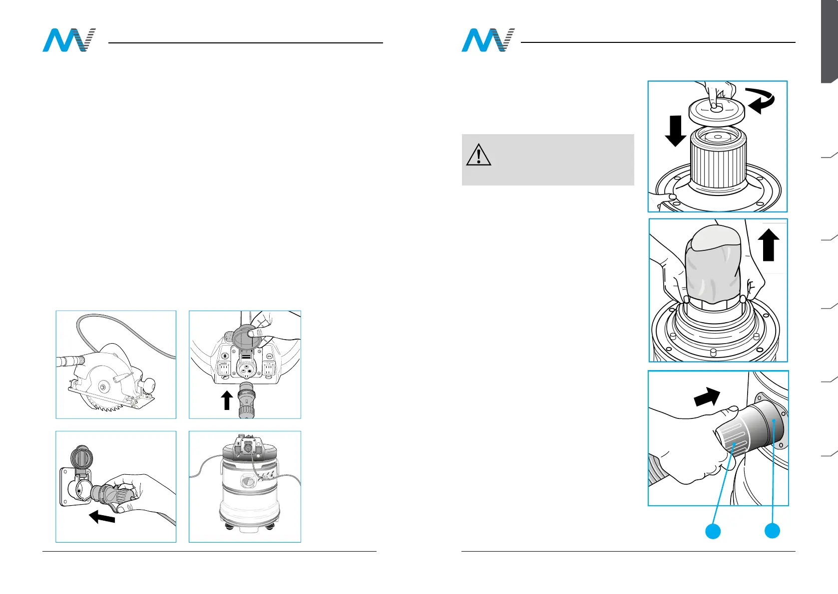 Plug in the power tool, then the vacuum. With the cable clamp, x the cable of the