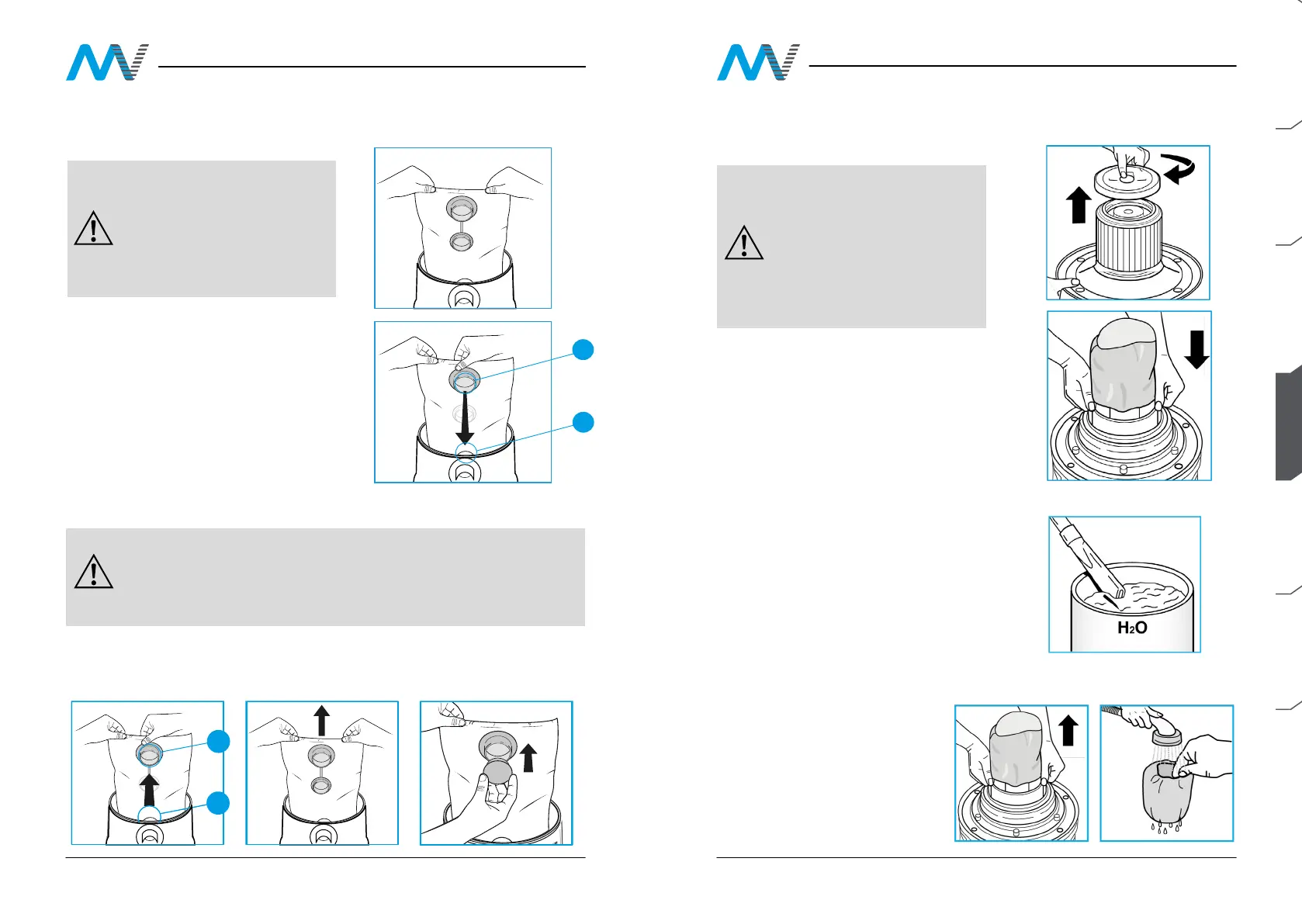 Retirez la bride en plastique (1) du raccord d’entrée d’air (2) et sortez le sac plein.