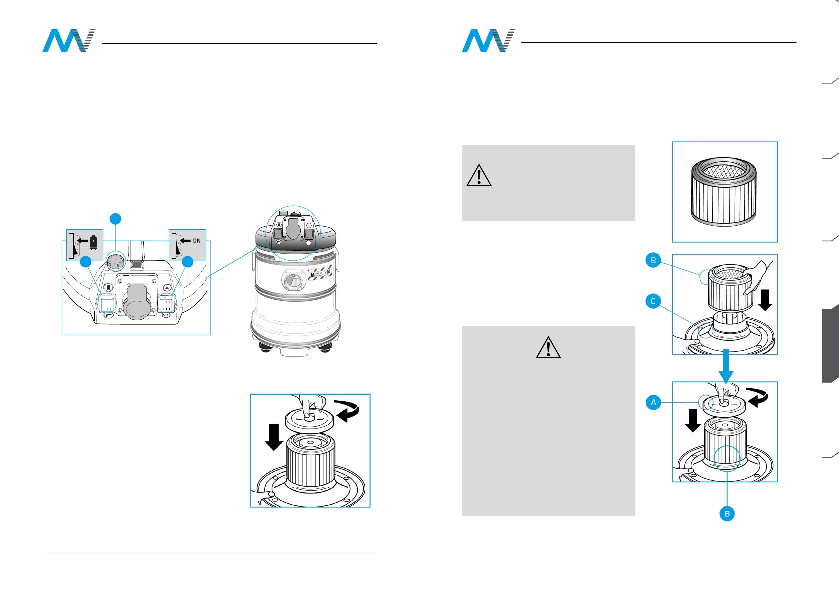 Spia luminosa (C): se il sistema di ltraggio o il tubo essibile è intasato, la spia