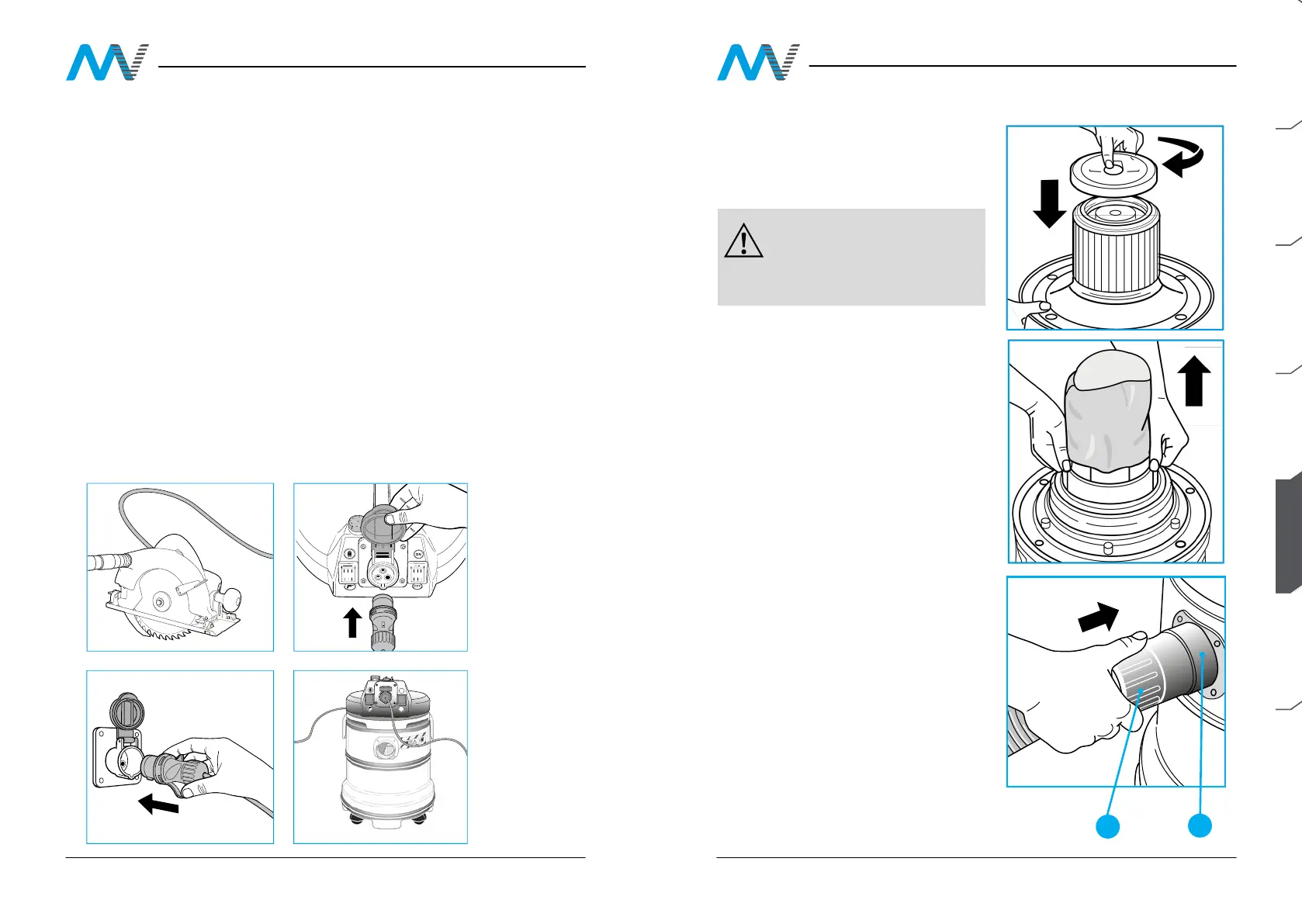 Collegare l’utensile elettrico, poi il vuoto. Con il serracavo, ssare il cavo
