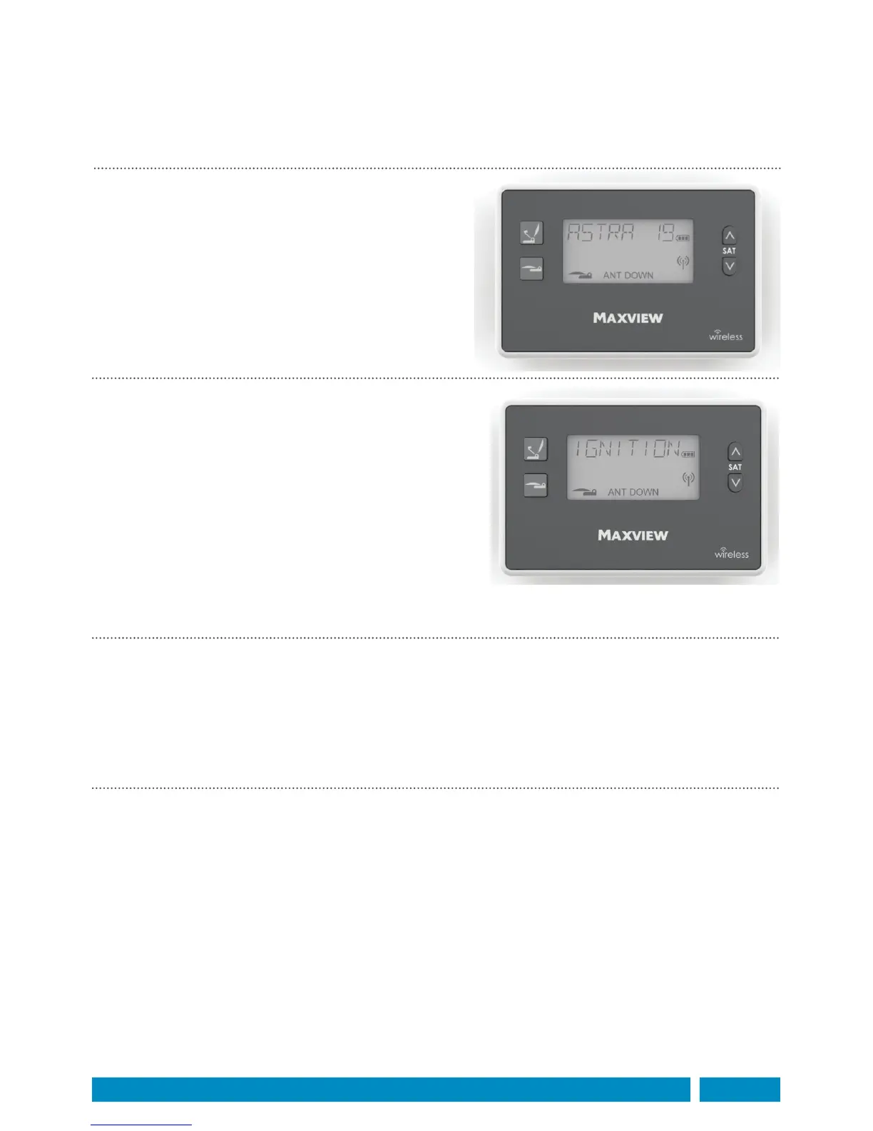 to PAUSE the antenna. Select a new satellite using the Change Satellite UP/DOWN Buttons. Press the