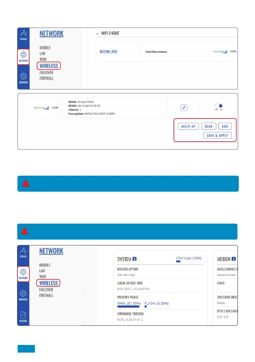 1. From the Web User Interface dashboard, select ‘Network’ and then ‘Wireless’ from the top menu.