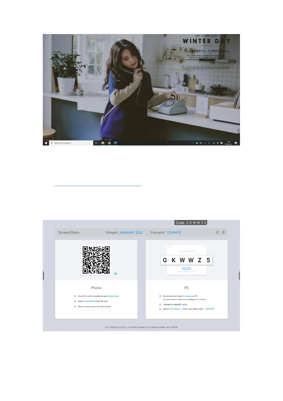 button and scan the TWO-DIMENSIONAL code on the wireless screen transmission