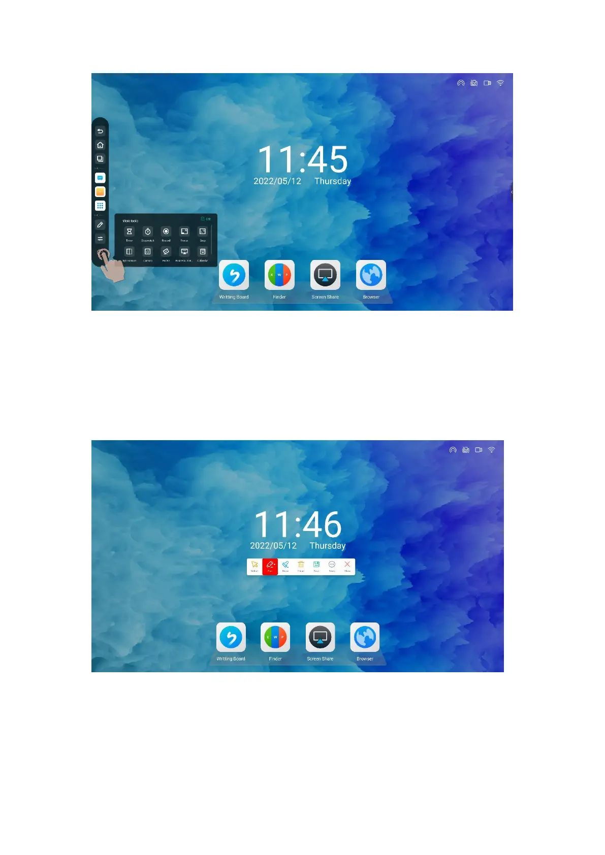 function allows users to write content in the current screen and annotate